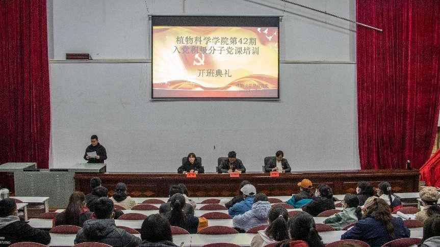 为贯彻落实《中国共产党发展党员工作细则》要求,进一步做好党员发展工作,坚定入党积极分子理想信念,加强对入党积极分子的教育和培养。2022年4月15日由植物科学学院学生党支部精心筹备的第42期入党积极分子培训班开班仪式在2教2107教室顺利举行。此次会议严格遵守学校疫情防控规定,采取线上线下相结合的方式展开授课。植物科学学院党委副书记、院长旺姆、党委副书记洛追朗杰、学生党支部书记央拉、学生党支部成员及培训班全体学员参加了开班仪式。学生党支部副书记吴洪星主持活动。