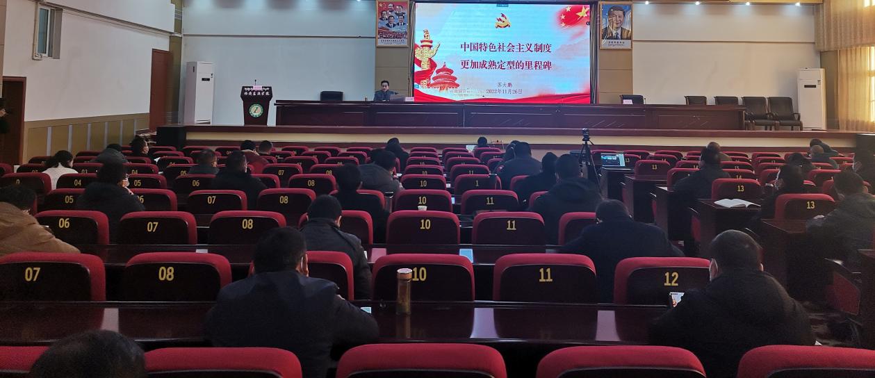 宣讲会上,苏大鹏副书记以《中国特色社会主义制度更加成熟定型的里程碑》为标题,从“导语、关于党的二十大所具有的重要里程碑意义的思考、关于中国特色社会主义制度基本内涵和历史沿革、党的代表大会制度更加完善更加规范、中国特色社会主义制度更加定型更加成熟、彰显对人类和平与发展事业的重大贡献和深远影响、完整准确理解党的二十大报告精神和逻辑结构”等几个方面作宣讲,从哲学的角度、政治的高度、理论的深度、实践的维度、逻辑的程度深刻阐述了党的二十大精神的精神实质、科学内涵、重要论述,精彩的讲授和清晰的PPT使得整个宣讲深入浅出、循序渐进、通俗易。他在宣讲中以“1”到“10”的数字概述党的二十大报告里的重要论述,帮助大家把握要以、加深印象、提高效果,深受大家的喜欢。在结语中他郑重强调,我们要紧密团结在党中央周围,牢记空谈误国、实干兴邦,坚定信心、同心同德,埋头苦干、奋勇前进,为全面建设社会主义现代化国家、全面推进中华民族伟大复兴而团结奋斗!