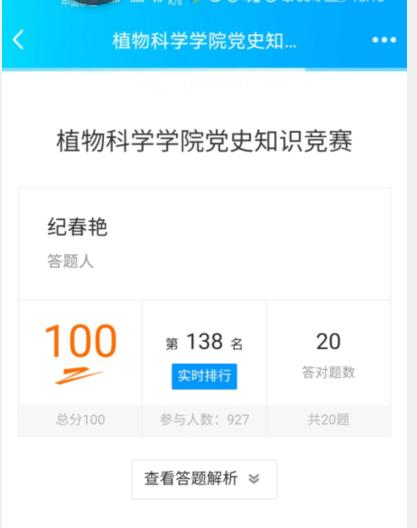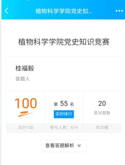 为庆祝中国共产党成立100周年,扎实推进“三更”教育暨党史学习教育,引导党员群众学党史、知党情、听党话、跟党走,加深对党的理想信念的认识和理解,促进党员群众在党史学习教育中感悟思想伟力,植物科学学院以“四史”学习为契机,以“三更”教育暨党史知识竞赛为抓手,在全院范围内统筹安排、精心组织开展线上“学党史、强信念、跟党走”“三更”教育暨党史知识竞赛活动。各支部积极发动和组织党员群众参加线上知识竞赛活动,学生党员和入党积极分子参与知识竞赛热情高涨,在学习中答题、在答题中学习,共同营造了人人学党史的良好氛围。