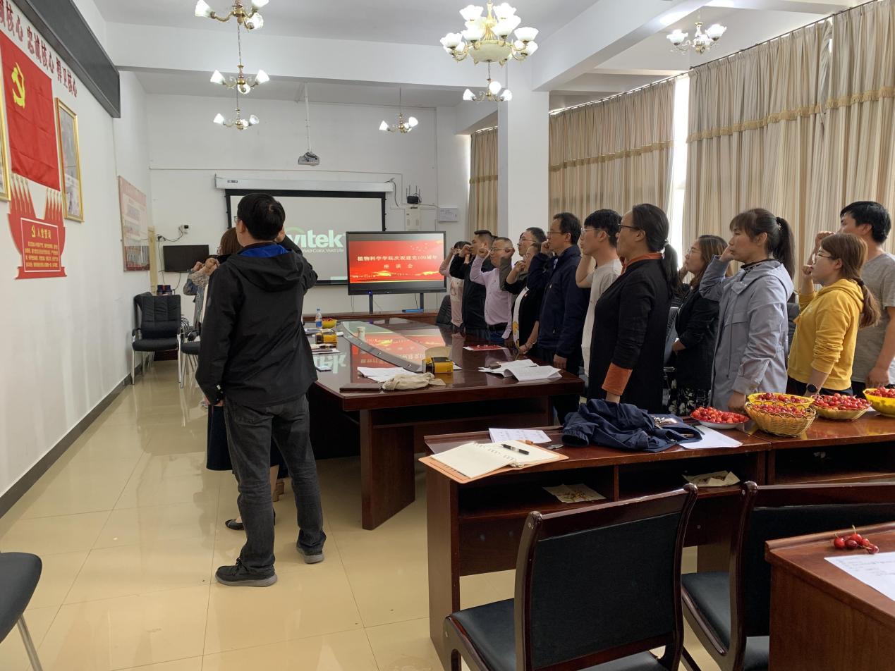 不忘初心跟党走,凝心聚力开新局。为庆祝中国共产党成立100周年,传承党的光荣传统,激励全院广大党员干部、教职工坚定理想信念,更好地发挥党员先锋模范作用,6月25日下午植物科学学院在二教四楼会议室组织教职工召开专题学习会和庆祝建党100周年主题座谈会。会议由学院旺姆院长主持;王元林副书记、次仁央金副院长、程街亮副院长出席会议;学院在校教职工40余人参加。以建党100周年为契机,通过重温入党誓词、学习五个专题内容、开展专题讨论和座谈会等议程,以实际行动向党的百年华诞献礼。