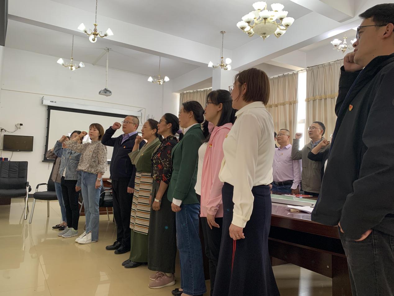 会议第一项,在小何燕老师的带领下,以集体宣誓的方式,重温对党的忠诚誓言,表达为党的事业奋斗终身的决心;会议第二项,旺姆院长和王元林副书记带领大家分别学习了新民主主义革命时期历史、社会主义革命和建设时期历史、改革开放新时期历史、党的十八大以来的历史、党在西藏执政的光辉历史五个专题内容,回顾中国共产党艰苦奋斗的光辉历史,用香港澳门回归、神舟十二号发射、拉林铁路开通等事例说明了中国共产党的发展以及如今来自不易的幸福生活,要求大家作为党员、教育工作者要时刻不忘初心、牢记使命,进一步增强了党员的责任感和使命感,激励和提醒每一位教师把个人前途命运与党紧密联系起来。大家聚精会神、认真聆听,不时伏案做笔记,收获颇多。