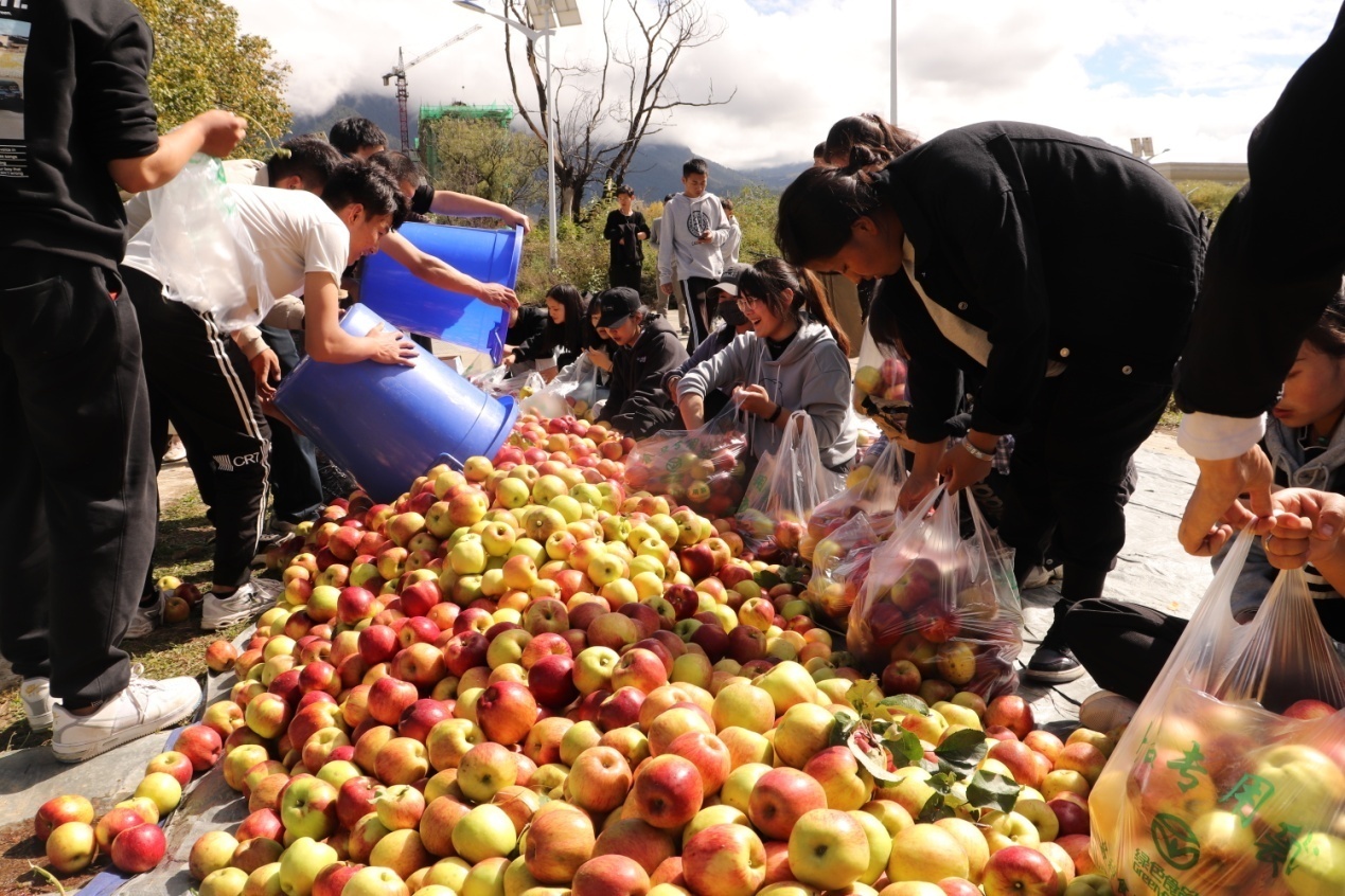 为深入学习习近平新时代中国特色社会主义思想,发挥基层党组织的战斗堡垒作用,引领广大党员继承和发扬党的艰苦奋斗、自力更生的优良传统,不断提高党性修养,充分发挥党员的先锋模范作用。10月25日,植物科学学生党支部组织党团学干部共计70人来到果园帮助果农采摘苹果。本次活动由党委副书记王元林同志亲自带队。