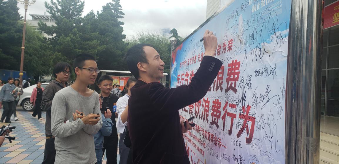 为深入学习贯彻习近平总书记关于坚决制止餐饮浪费行为的重要指示精神,带头落实餐饮节约,切实培养节约习惯,营造节约光荣、浪费可耻的餐饮氛围。2020年9月4日上午,在植物科学学院党委学生党支部牵头下,组织全校师生在学生第一食堂前开展“厉行勤俭节约 杜绝餐饮浪费”主题签字活动。
