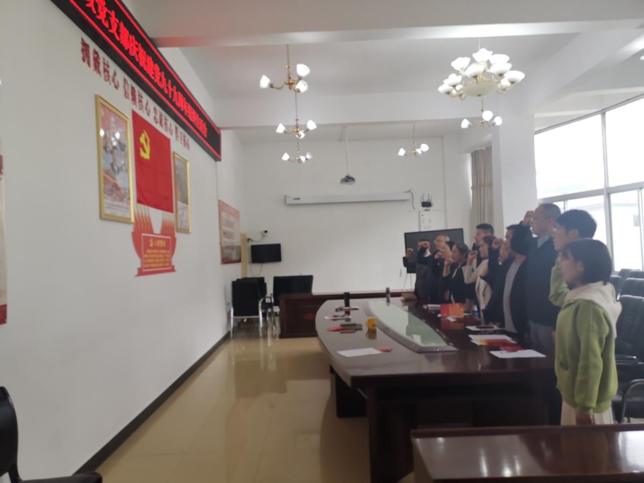在鲜红的党旗下,全体党员在领誓人央拉老师的带领下,举起右手 “重温入党誓词”庄严宣誓。回顾入党宣誓时的庄严承诺和坚定决心,回顾入党以来的成长历程,在党旗下再次接受心灵的净化和洗礼。