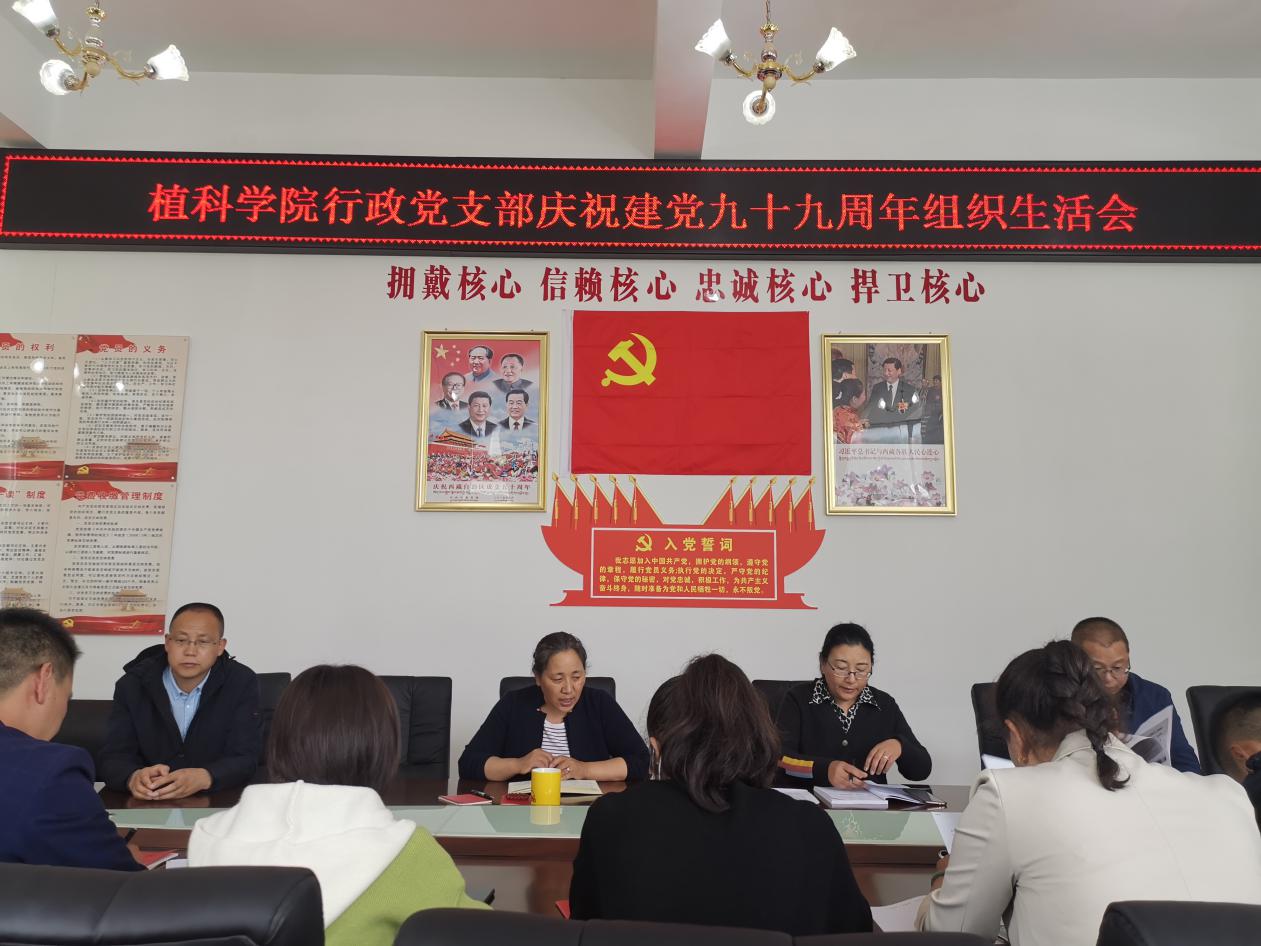 为热烈庆祝中国共产党成立99周年,巩固扩大“不忘初心、牢记使命”主题教育成果,激励本支部党员坚定信念、不忘初心、牢记使命、砥砺前行,在推进学校高质量发展中奋发有为、积极进取、再创佳绩,根据学校《关于开展庆祝中国共产党成立99周年系列活动的通知》精神,在建党99周年之际,本支部于6月30日晚19:00在植科学院四楼会议室召开了以“迎党的生日、讲战疫故事、悟初心使命”组织生活会。