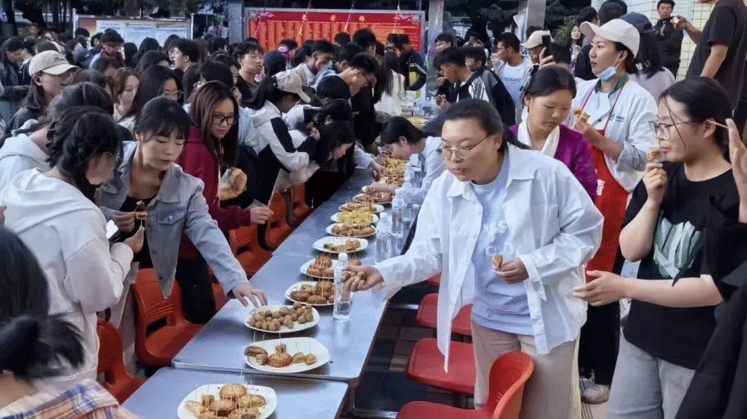 中秋佳节,花好月圆。中秋是一个团圆的日子,为铸牢中华民族共同体意识,让新生能够在学校中体会到家的感觉。在植物科学学院党委的安排下于9月17日上午10:00,在学生一、二、三、研究生食堂摆放甘甜可口的苹果、梨等水果,与学校师生共同分享果园丰收的喜悦。当晚19:00在植科院团总支学生会的精心安排下,欢聚学生一食堂门口开展民族团结月之“月满团圆,饼香情浓”为主题的中秋活动,参与学生500余人。本次活动由罗晓莉老师指导组织实施。