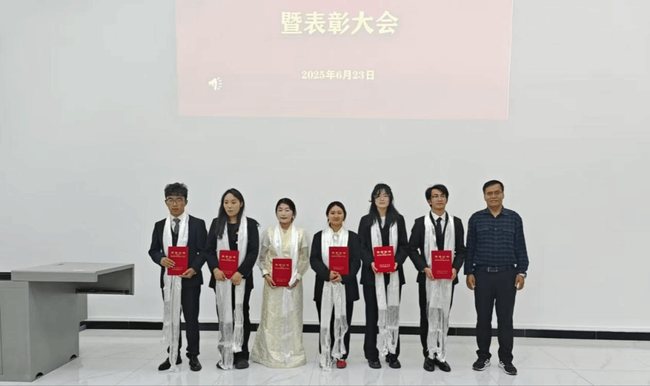 在热烈的掌声中,学院领导以及老师为获奖者颁发了证书和哈达,这不仅是对他们过去工作的认可和鼓励,更是对他们未来工作的期许和鞭策。
