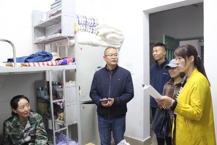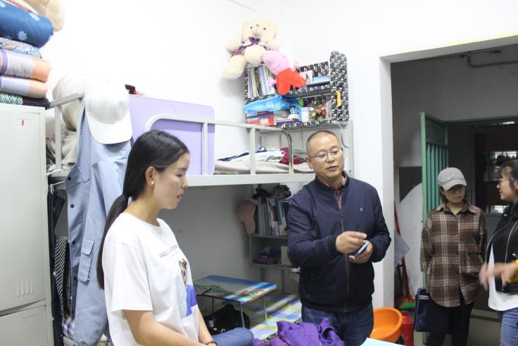 为了营造文明和谐的宿舍,使新同学们尽早适应校园环境,更快的习惯宿舍生活。我院学生科的秦丽、敬久赟、央拉、王兵老师在王元林副书记的带领下于2019年9月3日晚9点30来到新生宿舍,了解新生入学后身体生活等各方面情况,为刚入校的新生们送上最温暖、最贴心的关怀。