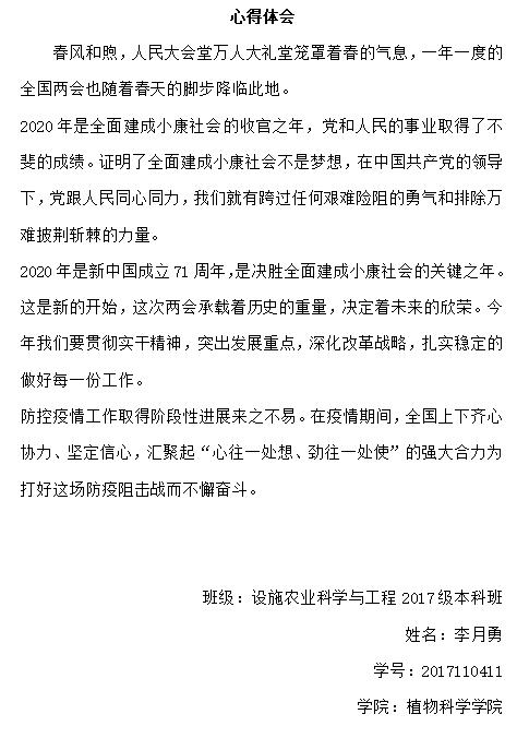 从学习反映情况看,广大师生都能够仔细观看、认真聆听,观看过程中不时地做笔记并相互交流自己的心得体会。通过两会精神的学习,广大教师表示在实际教学和管理工作中应认真贯彻落实两会精神,进一步增强自身的使命意识和责任意识,把思想和行动统一到两会精神上来。在以后的教学工作中要立足本职岗位,工作中要有高度的责任心和积极的工作态度,始终心怀学生,勤奋踏实,无私投入,不计较个人得失。同学们更加明确自己的时代使命与担当,表示在以后生活学习工作中,不断提高自己的思想认识和自身修养,作为祖国未来的中坚力量,我们要时刻不忘初心、牢记使命,在有限的大学生活中不断充实自己,不断丰富自己的内涵,切实把学习成果转化为实际成效,全力以赴配合好学院各项工作开展。为祖国的繁荣富强尽自己最大的心力,不负韶华。