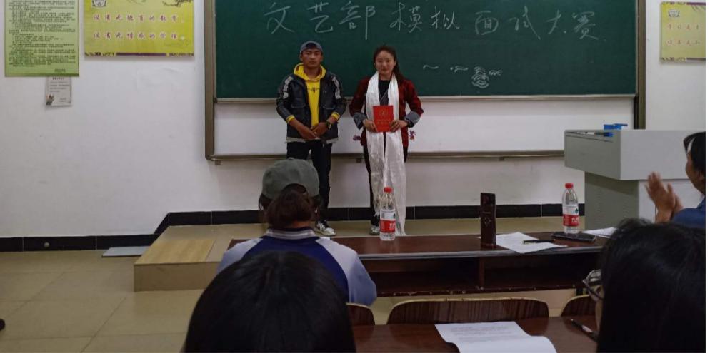 为了提高文艺部成员的综合素质,使其能尽早融入社会,体验工作面试流程,我部于2020年6月14日上午10:00在2105教室进行中国移动模拟面试比赛。本次模拟面试官有学生会主席次仁杰布,副主席德吉巴措等主席团以及各部门负责人,模拟面试人员是文艺部全体成员。在比赛期间,所有参赛选手耐心而又紧张地等待面试的到来,为自己能顺利通过面试做着准备。