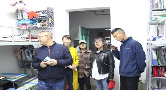 一间间干净整洁的宿舍,显示了同学们阳光向上的生活态度与睿智从容的生活气息,对此王元林副书记和全体老师给予表扬并鼓励同学们继续保持。老师们还与同学们亲切交谈,希望同学们在平日里多交流、多沟通,深化彼此的友谊,融洽宿舍氛围。同时,还为新生们日后学习发展的目标和方式方法提出了宝贵的建议,并为新生一一答疑解惑,化解他们初入大学的种种焦虑和不安,帮助他们尽快适应新的校园生活。最后老师们还叮嘱同学们要合理安排好学习、娱乐时间,注意休息爱护身体,并对宿舍用电安全等事宜进行了强调。