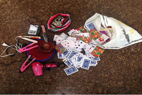 在检查管制刀具、违章用电过程中没收了刀具、赌博用具,违章