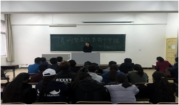 按学院通知的时间,各班级在自己班的教室如期开展了这次活动。此次主题班会是以演讲的形式展开。各个班演讲的同学都做了充分的准备,活动中同学们演讲了清明节的由来、革命先烈的英勇事迹,革命先烈的诗篇等,演讲内容观点鲜明,立意深刻。