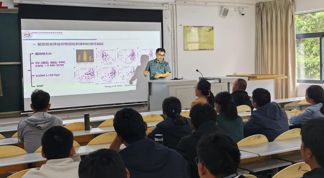 为了促进学术交流,为我院师生提供学习交流的平台,进一步提高学院科研水平。2023年8月13日植物科学学院和科研处联合邀请山东农业大学付道林教授和南京农业大学亓增军教授到我校做报告。植科学院副院长次仁央金、农学教研室全体教师、农艺与种业和作物学专业硕士研究生参加了本次讲座。