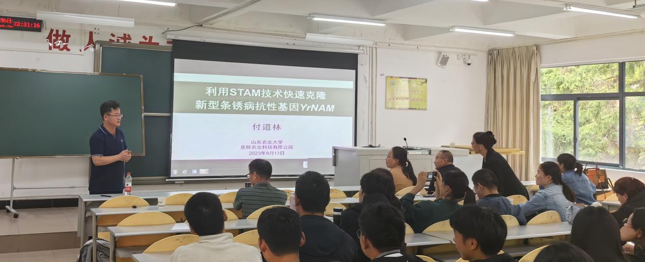 山东农业大学付道林教授做了《利用STAM技术快速克隆新型条锈病抗性基因YrNAM》的学术报告。付道林教授详细介绍了STAM技术,并分享如何利用该技术快速克隆新型条锈病抗性基因YrNAM的研究成果。此外,他还强调了STAM技术在小麦育种和基因克隆方面的应用前景。