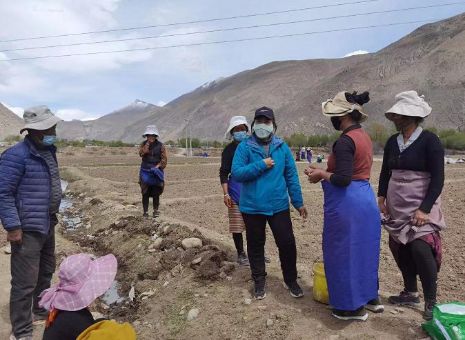 2023年5月1日,西藏农牧学院旺姆教授再次赴尼木县塔荣镇林岗村二组、塔荣村四五组指导2023年藏青2000种子田播种工作。在播种过程中旺姆教授现场示范药剂拌种流程,手把手地将科学用药知识传授给当地群众,指导农民科学使用微生物菌剂。因2022年旺姆教授推广示范的菌肥技术在青稞上增产效益明显,得到了广大群众的普遍认可。前期旺姆教授团队为尼木县塔荣镇又捐赠200吨菌肥。