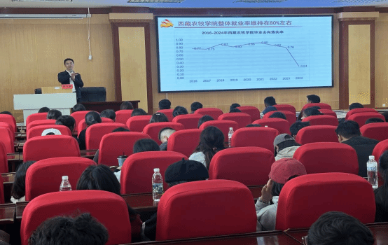 为了进一步促进植科学院2024届毕业生就业创业工作,教育引导毕业生积极转变就业创业观念,分析掌握当前严峻就业形势,宣讲党和国家积极、优惠的就业创业政策,进一步促进未就业毕业生早日实现就业,经过植科学院的精心准备、周密安排,2024年6月7日下午,学院特邀学校党委副书记、副院长、联系植科学院校级领导苏大鹏同志为学院2024届毕业生讲授就业创业观念转变教育,植科学院党委书记达瓦等全体班子成员、分管就业辅导员次仁旺姆、全体毕业生参加了宣讲会。