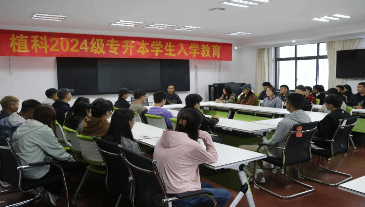 为使2024级专升本新生尽快适应新的学习环境、明确下一步学习任务、做好大学职业规划,指导大家深刻学习领会习近平总书记关于青年工作的重要论述精神和对青年学生的寄语精神,帮助大家树立正确学习和成才目标,根据植科学院入学教育计划安排,在学生科的精心组织下,2024年8月14日-18日,植科学院在一站式会议室为2024级专升本大学生集中开展了入学教育。