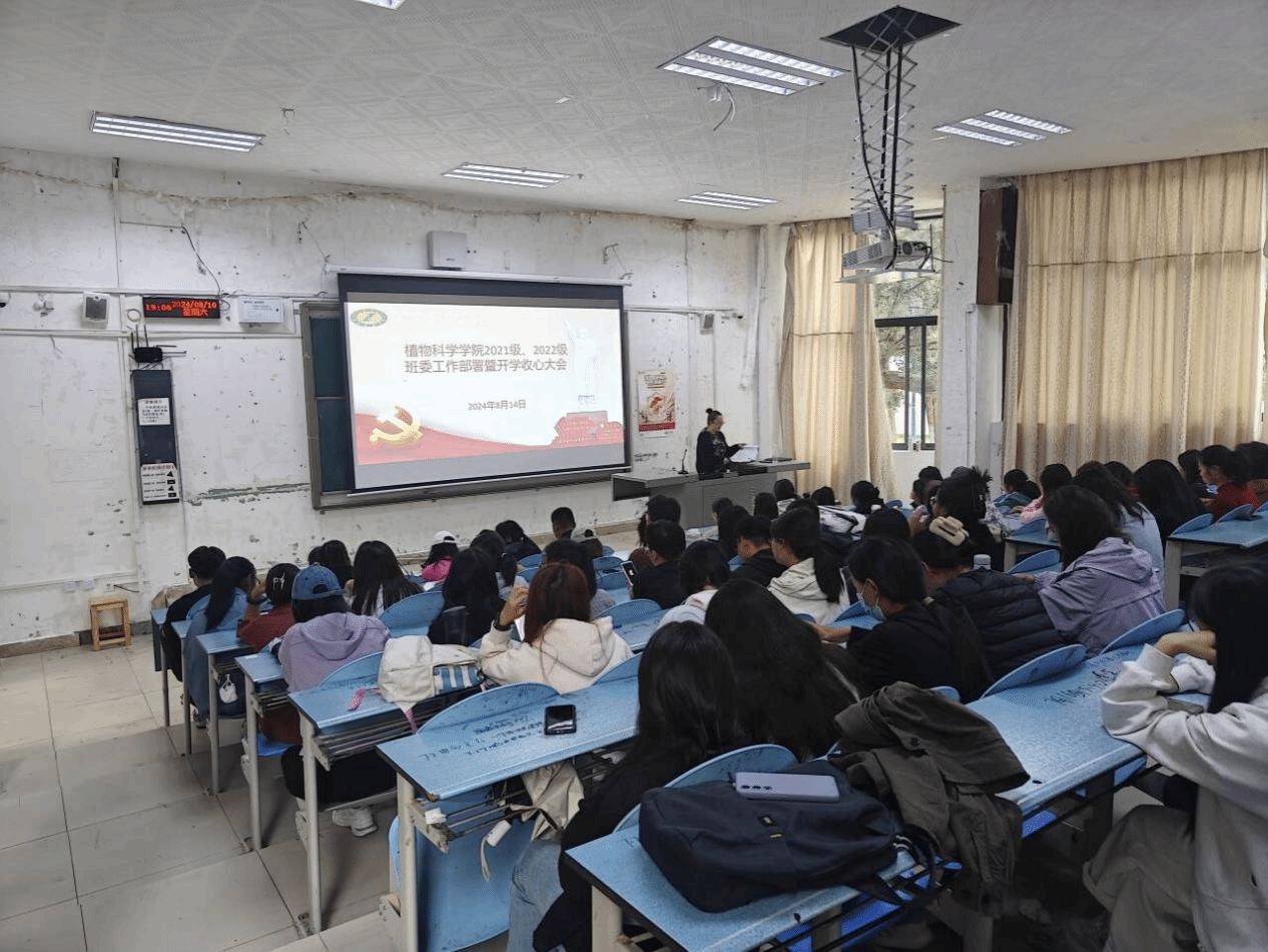 为进一步落实好开学“第一课”要求,学习宣传党中央关于青年工作、“三农”工作、教育工作的重要精神要求,深入学习习近平总书记建团100周年讲话精神和五四青年节寄语精神,加强青年学生思想政治和大学生教育管理服务,全面探究和实践班团一体化运行机制,明确班委和团学组织岗位职责和工作任务,不断增强团学组织凝聚力和思想教育工作向心力,在植科学院党委的关心指导和精心组织,2024年8月11日-19日,植科学院团总支分别在一站式服务中心二楼会议室、一教1107教室、一教1102教室、一教1101教室、三教3102教室分层分类开展了7场次开学“第一课”、收心会、工作会,对植科学院各年级团学干部加强了思想教育、动员部署了重点工作。