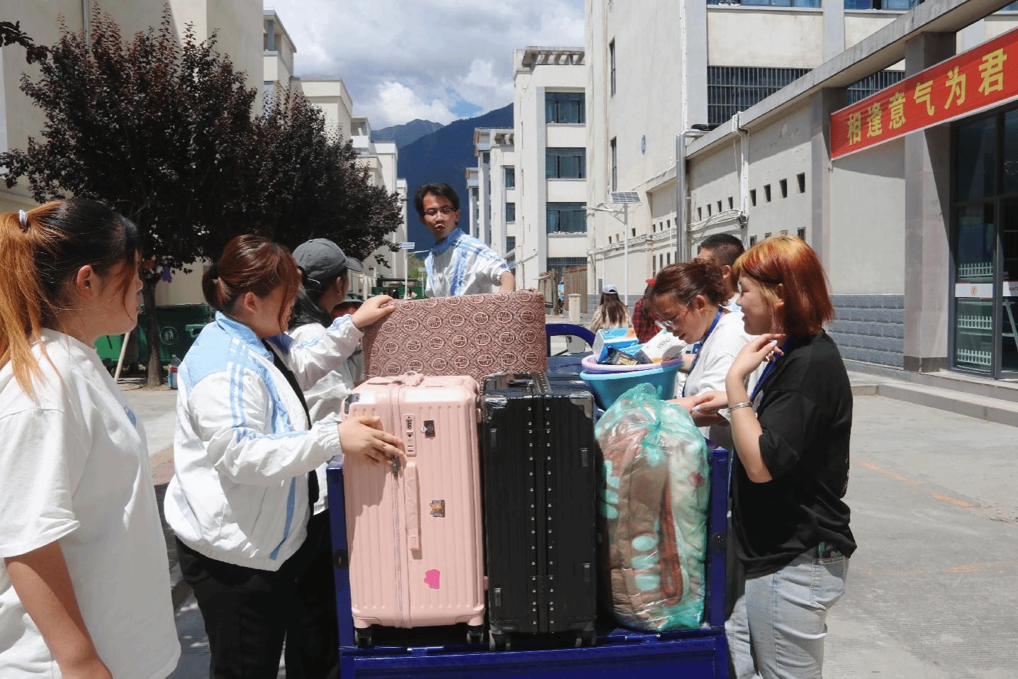 随后,搬运组同学迅速衔接,将行李贴签分类、装车运输,有条不紊、准确无误转送到宿舍点志愿者手中。与此同时,身着院服的师哥师姐将新生和家长带至学生公寓,路上还不时为萌新们答疑解惑、耐心介绍,以使他们尽快消除陌生感,融入大学校园生活。