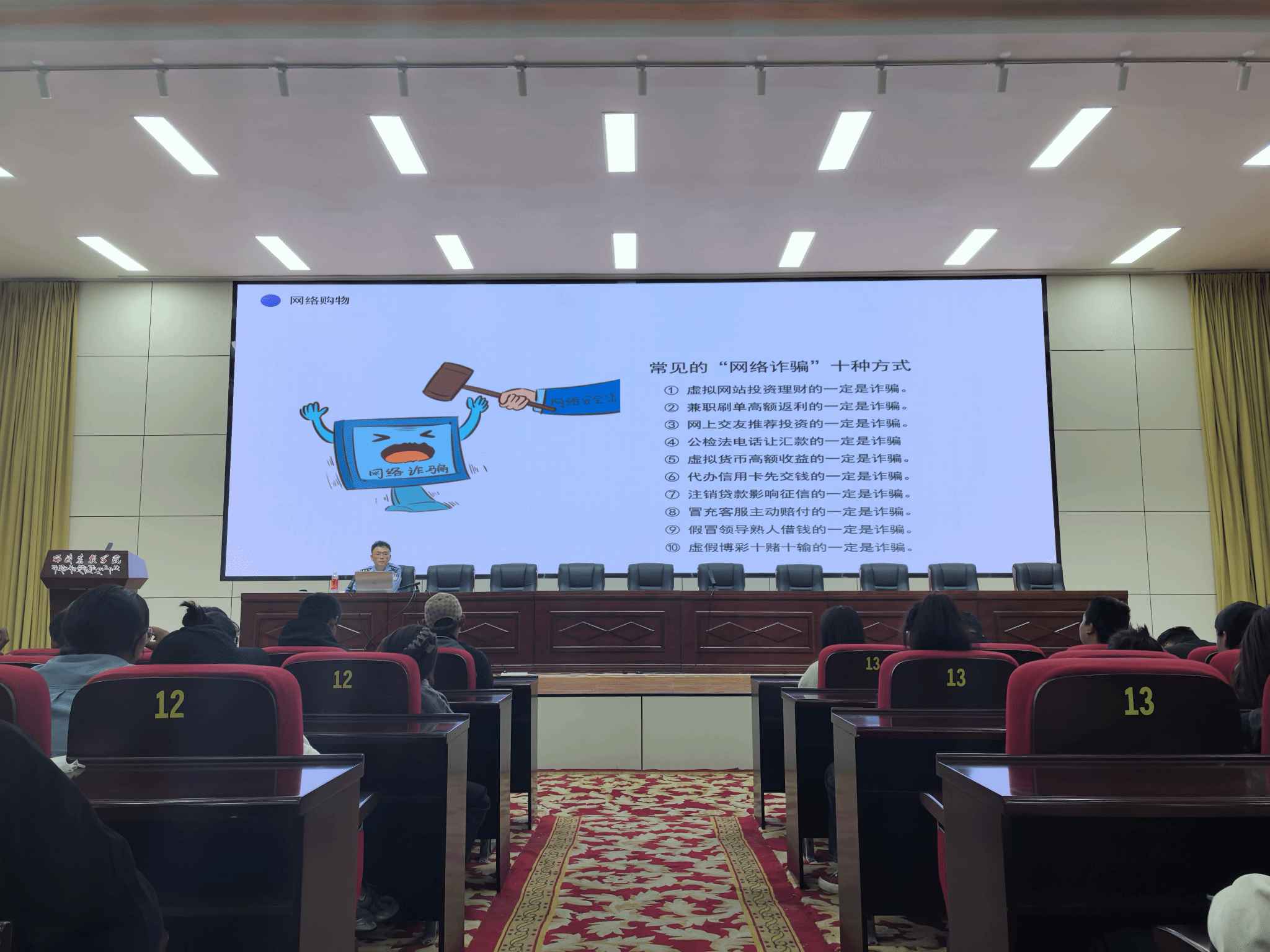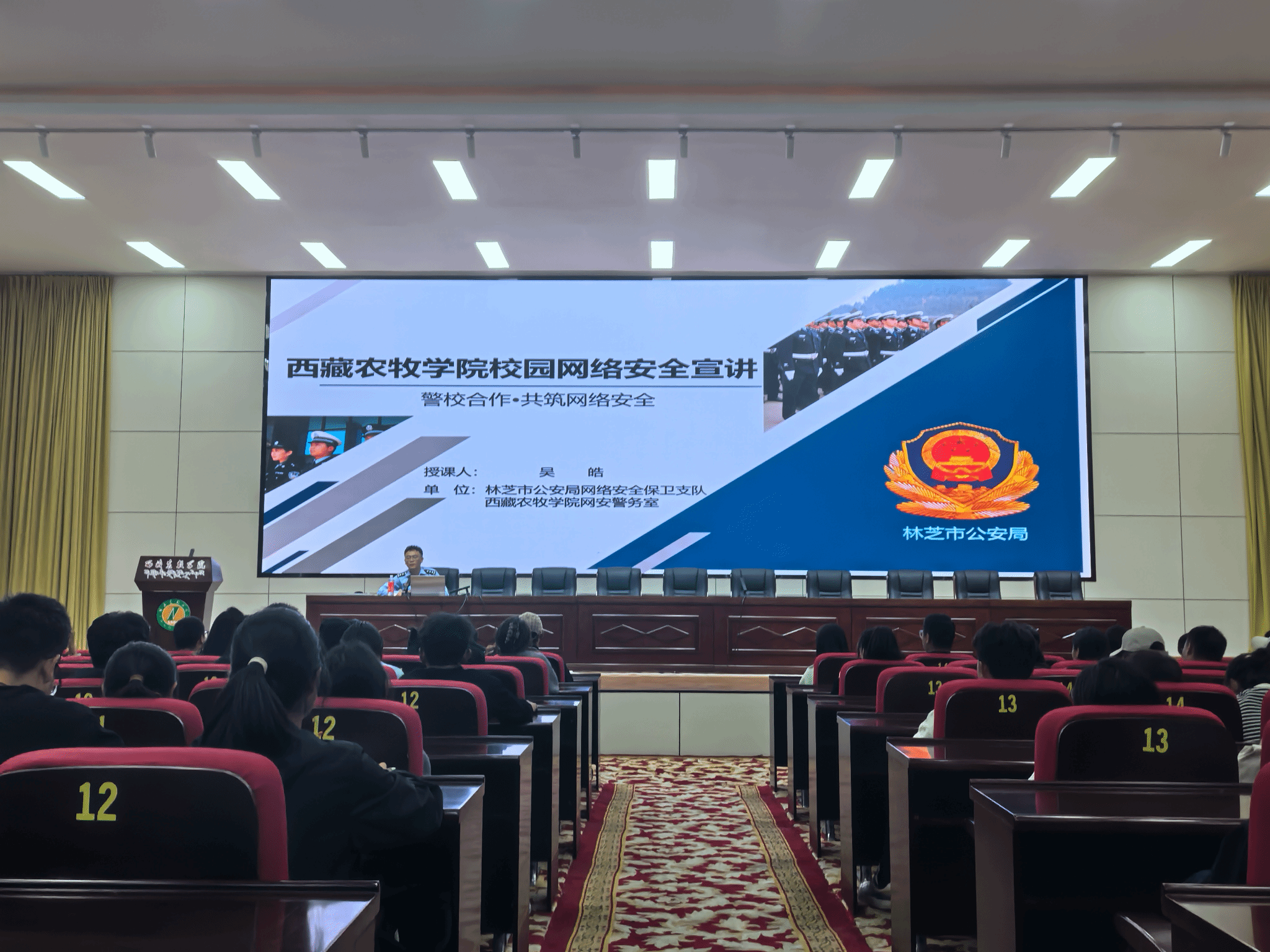 为创建平安校园,加强校园网络安全,进一步深化拓展2024级新生入学教育和党风廉政宣传教育月活动,不断增强大学生网络安全思想意识,提高大学生网络安全防范能力,积极营造安全、健康、文明的校园网络环境,2024年9月16日晚19:30,在植科学院党委的指导安排下,学院农经专业学生党支部特邀林芝市公安局吴皓警官为植科学子开展了一场精彩的校园网络安全教育讲座,讲座由党支部书记、辅导员王兵主持,学院2024级全体新生参与讲座。