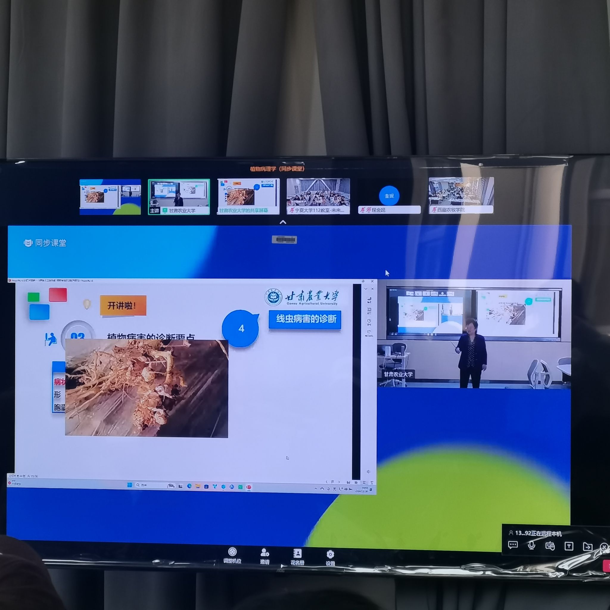 2024年11月20日,在智慧树平台的支持下,我校2022级植物保护本科班的81名学生与甘肃农业大学、宁夏大学的大二学生参加了此次同步课堂,三校教研西行项目组成员观摩甘肃农业大学徐秉良教授的授课。