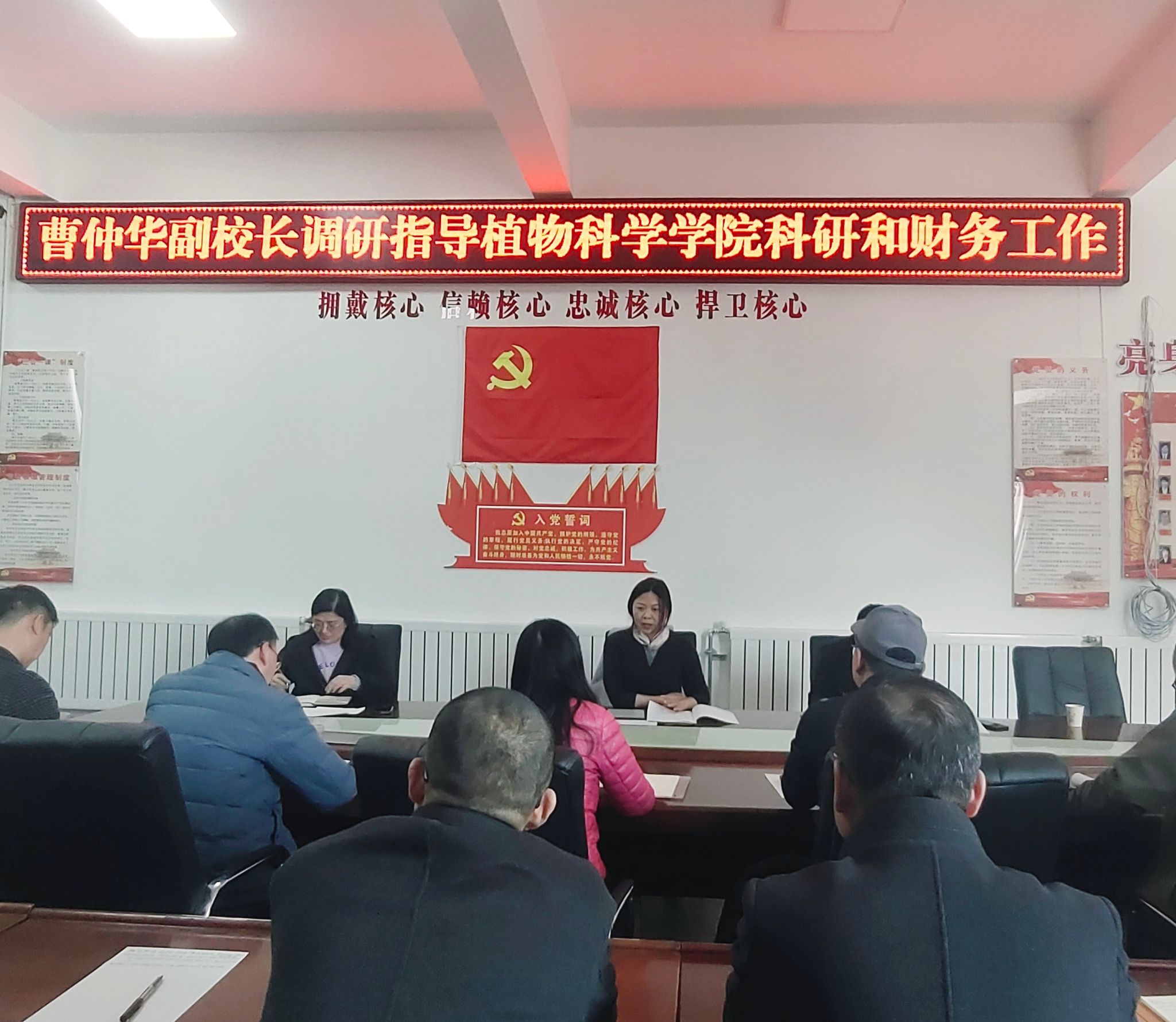 为了谋划好学校“十五五”规划及2025年度各项重点工作,深入推进“新农科”建设,在重要事业发展中切实打好“政治、需求、区域、特色优势”四张牌。2025年3月18日下午15:30,学校党委委员、副校长曹仲华,计财处副处长尚涛,科研处综合科科长唐佳一行莅临植物科学学院调研指导学院工作。植科学院院长次仁央金、副院长董爱荣、副院长蒙祖庆以及11名科研工作人员参加会议。