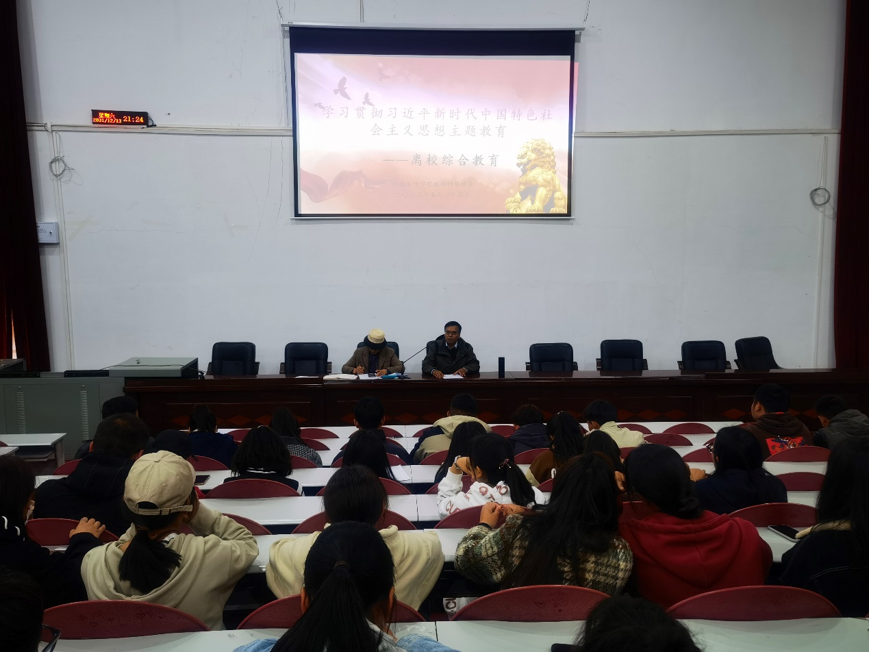告别师长、告别同窗、告别母校,2023届毕业生们即将带着梦想踏上新的人生路。为贯彻习近平新时代中国特色社会主义思想,深入推进主题教育走深走实,在毕业生离校之际集中教育安全稳定、马克思主义“五观”“两论”、社会主义核心价值观、民族团结、就业创业等方面的理论知识,2023年5月25日15:30-17:00,植科学院在2-107教室举行了2023届毕业生离校教育大会。党委书记达瓦、院长旺姆出席会议,学生科全体辅导员及植物科学学院所有在校毕业生参加此次会议。毕业生辅导员王兵主持会议。