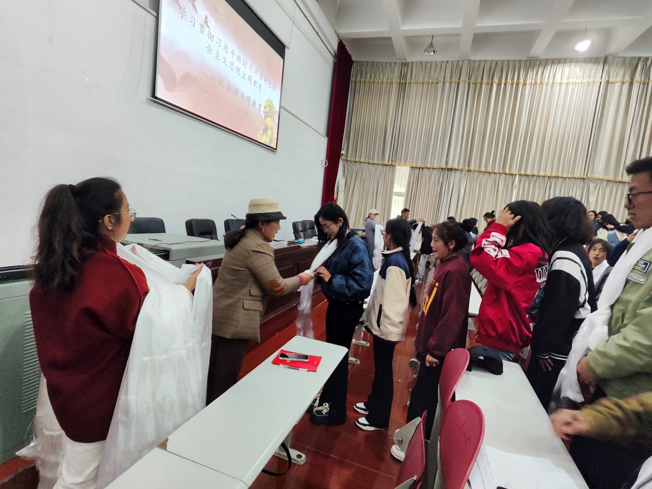 在就业总量压力之下,更加考验求职者的竞争力。对此,旺姆对毕业生们开展“转变就业观念、培育正确择业观念”的专题教育。旺姆传达学习《致拉萨2023届高校毕业生的一封信》内容精神,以此展开话题,她指出,毕业生们要在积极响应党的号召、服从组织分配、坚决维护和谐西藏的前提下,培育自身正确的择业观念,破除自身‘等、靠、要’的思想,牢固树立‘先就业解决生存,再择业寻求发展’的观念。学会从多渠道获取更多好的就业岗位,打破信息偏差,学会用发展的眼光看问题,教育引导大家早日实现就业。