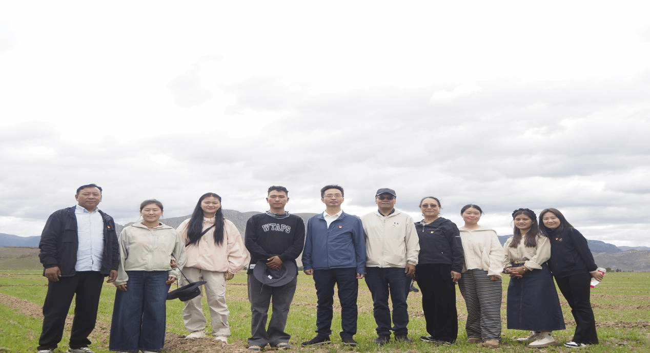为进一步深化校地合作,推动农业科技成果转化,强化科技服务“三农”能力,助力西藏乡村振兴,在党建引领下,西藏农牧大学和拉萨市林周县积极探索“党建+科技小院+乡村振兴”高原特色农业现代化建设新模式。经过前期的充分准备,2025 年 7 月 1 日上午10:00,在“七一”党建104周年诞辰之日,由校地联合策划和推动的以“党建引领・科技赋能”为主题的一场党日活动在西藏拉萨市林周县数字产业园区隆重开展。西藏农牧大学党委副书记、副校长苏大鹏,中国农业科学院作物科学研究所副所长、国家大麦青稞产业体系首席科学家、学校客座教授郭刚刚,林周县县委常委、副县长洛旦,拉萨市农业气象局国家农试站站长拉巴,西藏农牧大学柔性引进人才达瓦顿珠博士,植物科学学院党委书记达瓦,植物科学学院作物学教授卓嘎,林周县气象局副局长云旦次仁,林周县气象局纪检员拉巴次仁,植物科学学院专职组织员央拉以及全体西藏拉萨高原作物科技小院研究生共计20余人参加了活动。活动分为科技小院揭牌、“迎大庆、颂党恩、共奋进”党日活动、参观实习实训基地、看望慰问入驻基地研究生、拓展就业实习岗位等环节,分别由达瓦、央拉主持。
