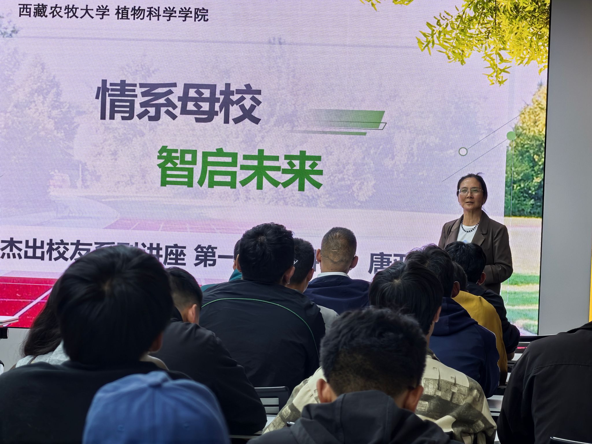 2025年8月21日晚,学院首期“情系母校,智启未来”杰出校友系列讲座在二教2308智慧教室隆重举行。本期主讲嘉宾为西藏自治区农牧科学院农业研究所所长、国家大麦青稞产业技术体系副首席/岗位专家专家唐亚伟研究员,他以《西藏青稞种业科技创新发展与展望》为主题,为师生带来了一场融合科研前沿与职业规划的精彩报告。植科学院院长次仁央金出席报告会并讲话,报告会由副院长史玮主持。