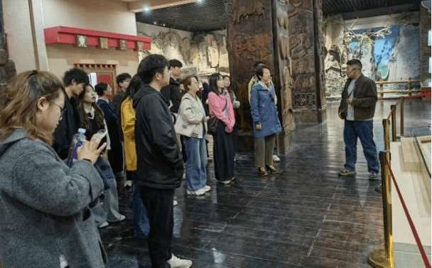 研学之旅首站,团队走进藏东南文化遗址博物馆。步入展厅,时光仿佛倒流,古老文明的气息扑面而来。陈列的藏族服饰、节庆器具与历史文物,虽静默无声,却诉说着岁月的厚重与民族生活的诗意。讲解员细述每一件展品背后的故事——从丝线的纹路到图案的寓意,从色彩的温度到工艺的灵魂,无不展现藏族文化的审美智慧与精神内涵。学生们驻足凝望,沉浸于文物承载的文化张力,不仅收获知识,更在心底激起对藏地文明的敬意与思考。藏东南的风,穿越雪域高原,拂动青春的心弦,启迪学子们以“感悟”而非仅“看见”的方式理解文化。