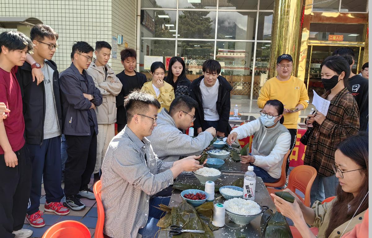 在活动中,由研究生秘书贾祥老师和学生科王兵老师介绍了本次端午节主题好的主题、意义及内容,接着研究生班长李东玉介绍了端午的习俗,21级学姐周新讲解了粽子的制作方法,大家都跃跃欲试,不少同学、教职工及家属都上来围观,工作人员把红枣、粽子叶、糯米等材料摆上桌后,大家都开始尝试进行包粽子,大家一边包粽子,一边与老师探讨交流,彼此之间指导帮助,忙的不亦乐乎。