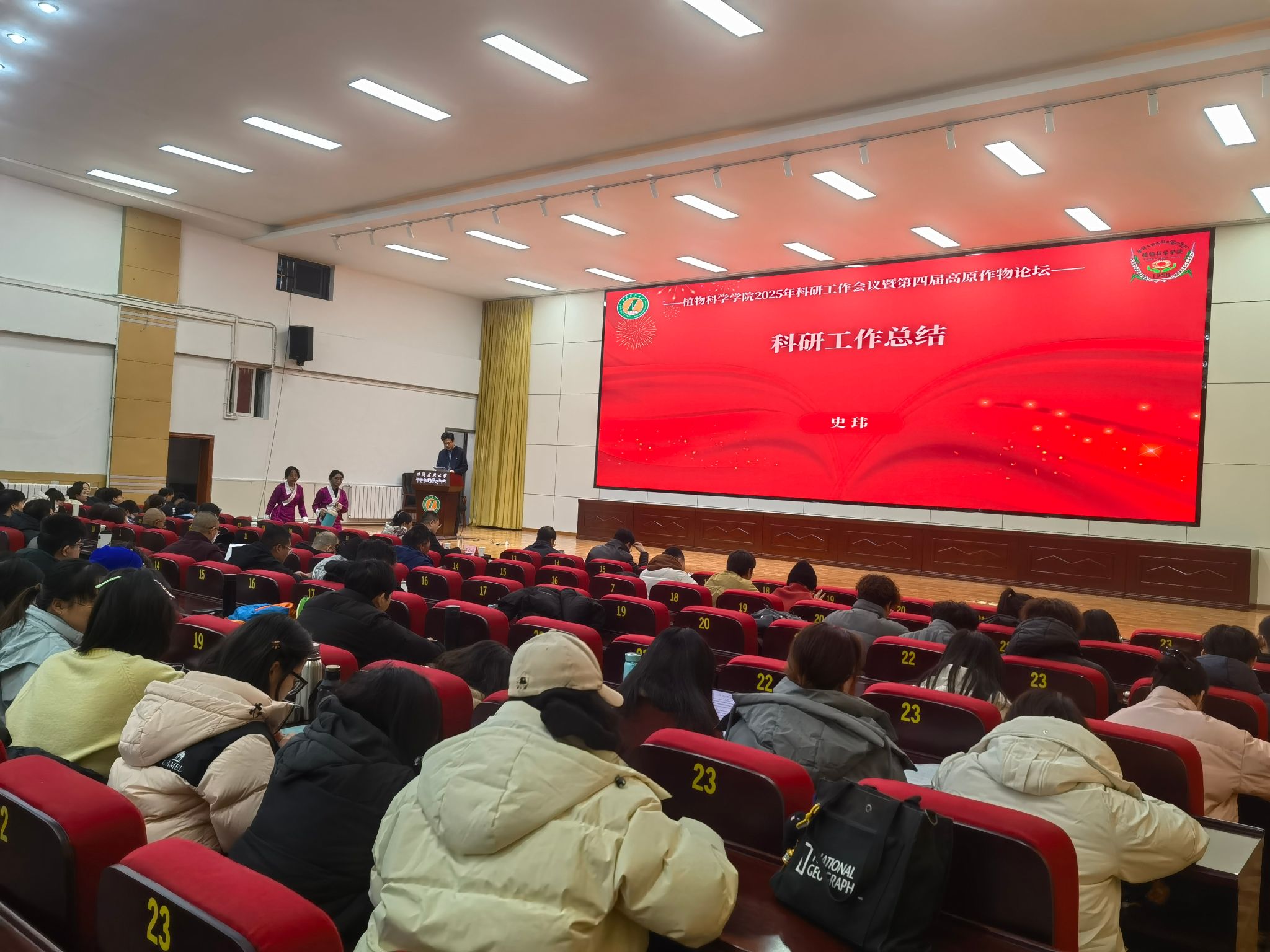 为全面系统总结近三年科研工作、表彰先进典型、激发创新活力、促进学术交流,植物科学学院于12月8日在第一行政楼学术报告厅隆重召开2025年度科研工作会暨第四届高原作物论坛。会议特邀西北农林科技大学、南京农业大学等高校的专家、博士研究生及硕士研究生代表共同参与,通过成果总结、表彰先进、经验分享与学术交流,凝聚发展共识,推动学院科研工作向更高水平迈进。
