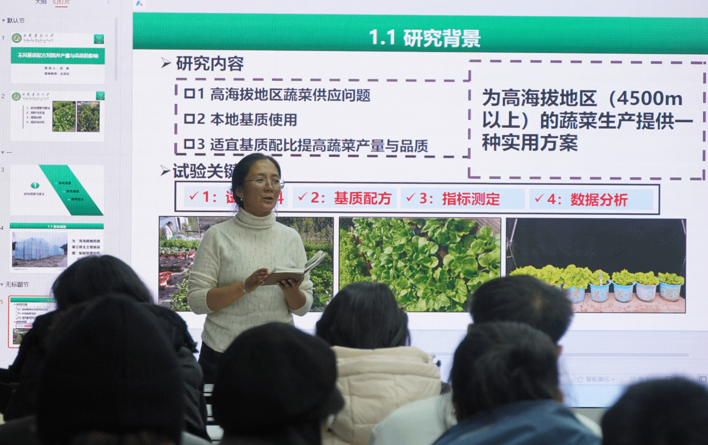 论坛尾声,植物科学学院次仁央金院长对本次分论坛进行总结。她高度肯定了研究生代表的汇报质量,认为汇报内容紧密结合高原农业实际需求,体现了较强的科研创新性与应用导向性。同时,次仁央金院长梳理了论坛中的核心学术观点,鼓励研究生持续深耕高原作物领域,加强跨校、跨学科合作,并对学院未来在高原农业科研与人才培养工作提出了明确方向与期望,为本次论坛画上圆满句号。