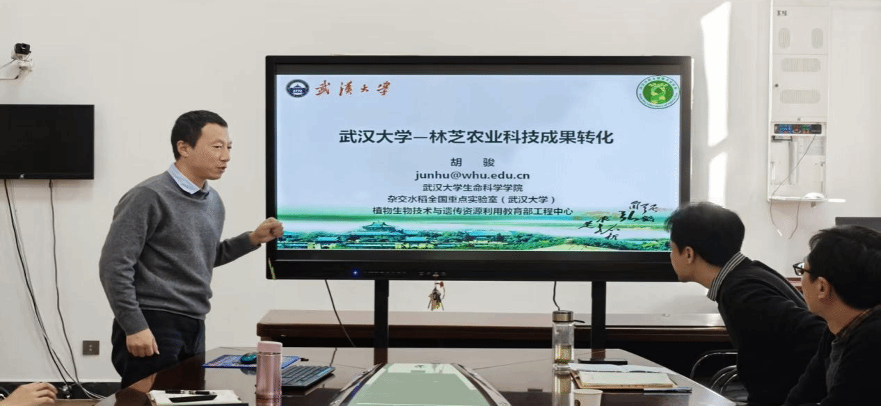 在双方分别介绍参会人员后,杂交水稻全国重点实验室(武汉大学)代表胡俊副主任进行了“武汉大学-林芝农业科技成果转化”主题报告。报告内容涵盖西藏农业现状、杂交水稻全国重点实验室概况及四大代表成果分享、高原农业科技需求、西藏农业的“卡脖子”问题等,充分展示了实验室在各地区试种的杂交水稻品种,并重点强调了西藏地区培育水稻的显著增产潜力与优异生态适应性。