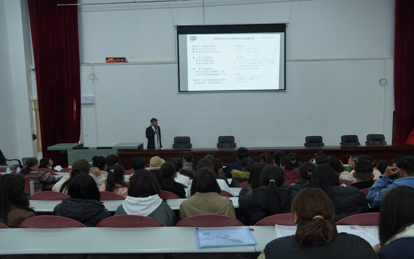 为了进一步推进我院毕业生就业工作、不断加强校企合作,2023年4月22日上午,西藏德弘农业科技有限责任公司在我校二号教学楼2107教室成功举办了校园宣讲招聘会和合作交流座谈会,山南市琼结县委副书记王晓静、公司董事长管大鹏、学院党委书记达瓦、院长旺姆、副院长次仁央金、就业分管辅导员罗晓莉参加了座谈会及招聘会,植科学院、资环学院相关专业100多名毕业生参加了宣讲招聘会,80余名递交了简历,20名被录用。