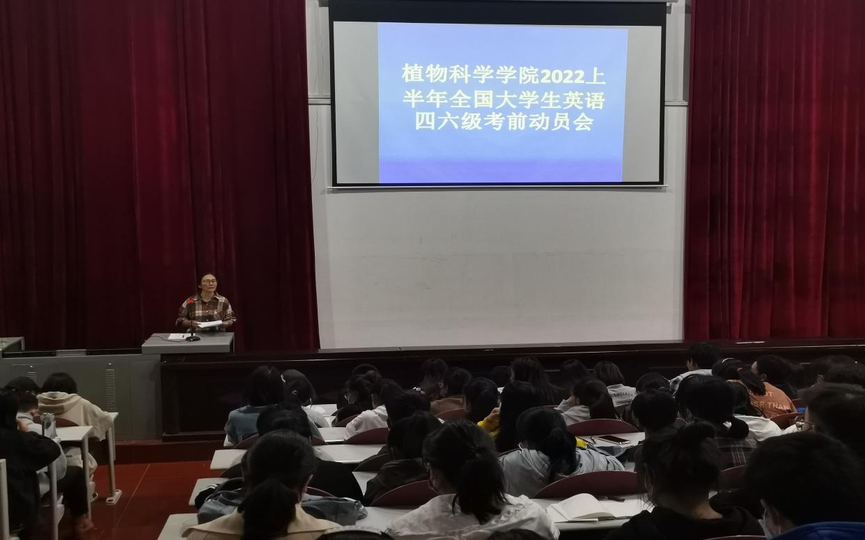 6月6日,由我院教学科主办了植物科学学院2022上半年全国大学生英语四六级考前动员会在2号教学楼2107室举行,院领导次仁央金副院长主持本次会议,18级、19级、20级和21级涉及本科、研究生报名四六级全国英语考试的389名学生实到351名参加本次动员会。