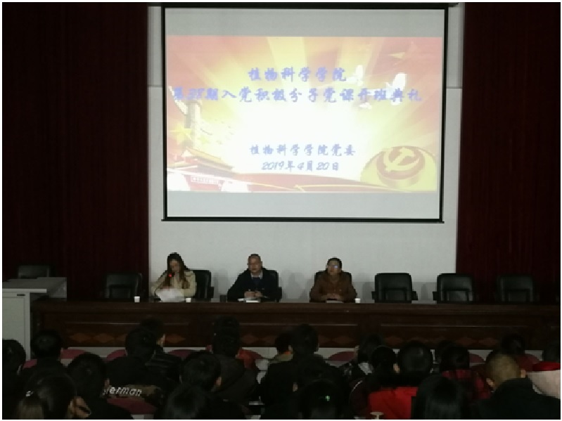 为学习贯彻“四讲四爱”重要精神,践行“两学一做”常态化制度化要求,加强学生思想政治教育,普及党的知识,进一步加强入党积极分子教育培训工作,提高入党积极分子的思想觉悟和理论素养,秉承对入党积极分子的严格要求,植物科学学院于2019年4月20日19:00在2107教室隆重举行第38期入党积极分子党课开班典礼。植物科学学院党委书记次仁吉、副书记王元林出席开班典礼,王倩倩老师主持,共计153名学员参加。