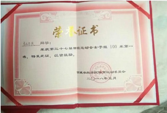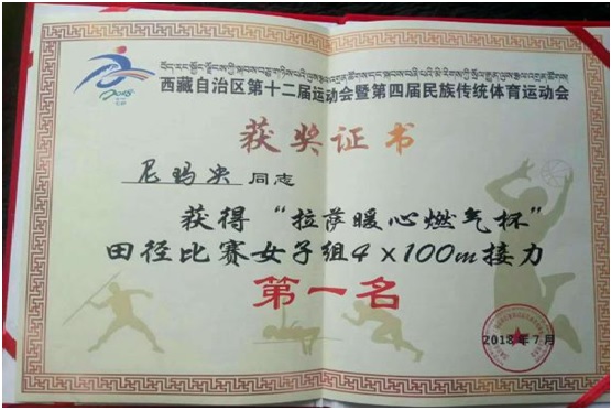 她在校期间代表学校多次参加西藏自治区中学生运动会、西藏自治区民族传统体育运动会,均获得优异成绩,为学校、学院争得了荣誉。自入校以来,积极参加学校每届运动会、“阳关体育”运动等,为学院争得了荣誉,厚厚积累的荣誉证书,倾注了辛勤的汗水和全民健身运动的理念。