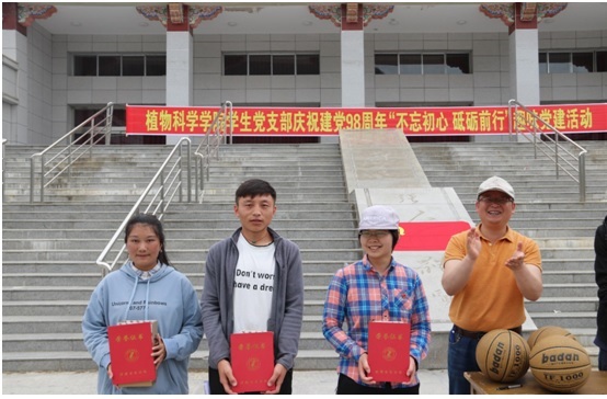 在庆祝中国共产党成立98周年之际,为深入贯彻落实《中国共产党支部工作条例(试行)》,通过开展形式多样、主题鲜明、广泛参与的主题教育实践活动,让“文山会海”远离基层党组织,激励广大党员进一步树牢“四个意识”、坚定“四个自信”、做到“两个维护”,勇于担当作为,以求真务实作风把党中央决策部署落到实处,继续发挥好基层党组织政治引领和战斗堡垒作用,激发广大党员立足岗位做奉献,勇于担当有作为,植物科学学院学生党支部举办了形式新颖的“不忘初心·砥砺前行”党建趣味活动,把党建知识与趣味竞技相结合,让党员乐于参与其中,并在快乐中进一步了解党知党识。