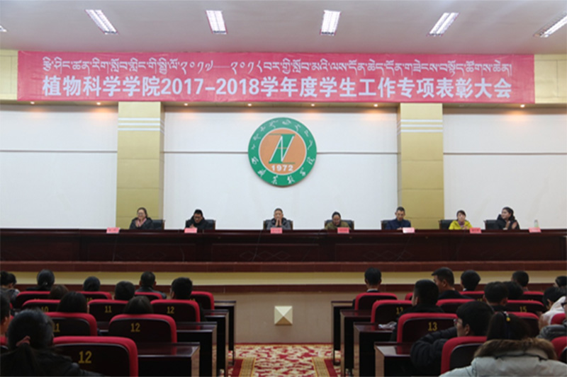 大会首先由植物科学学院党委副书记次仁央金副向全体师生致辞:“为进一步推进我院学生工作的制度化、规范化、科学化建设,创建优良学风校风,构建社会主义和谐校园。今天,我们在这里欢聚一堂,隆重举行植物科学学院2017-2018学年学生工作专项表彰大会。出席大会的领导有:植物科学学院院长王中奎,党委副书记次仁央金,副院长达红旗等。此次会议由我选党委副书记次仁央金主持,学生科全体辅导员、学生代表450余人参加了大会。我选党委副书记次仁央金代表学院党委、行政班子向全体师生致以亲切的问候!此次大会,共有六项议程。