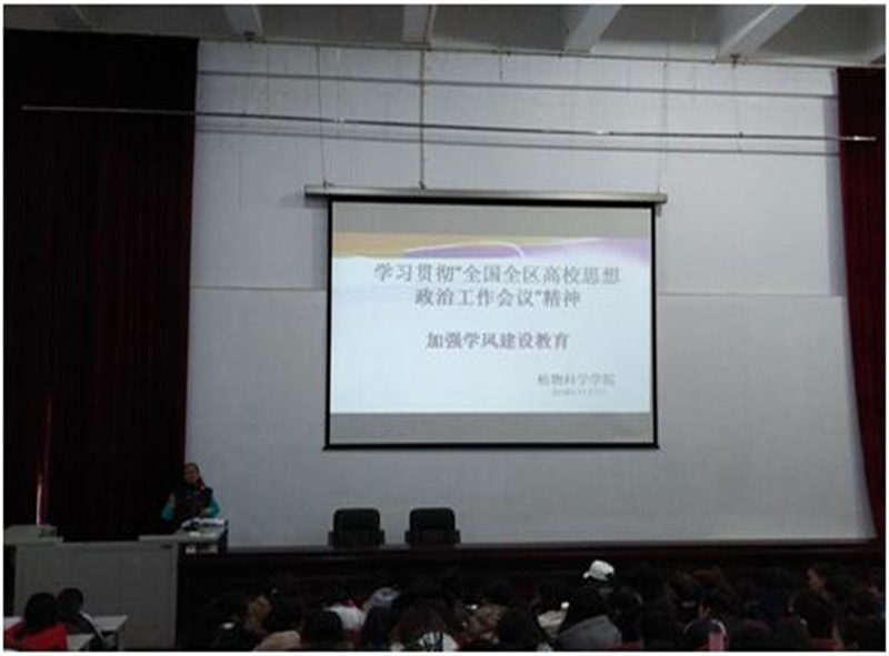 2018年11月7日下午18点整,植物科学学院学习贯彻“全国全区高校思想政治工作会议”精神大会,在第二教学楼107教室召开。会议的主要任务是:传达学习贯彻全国全区高校思想政治工作会议精神,深入学习贯彻习近平总书记在全国高校思想政治工作会议上的重要讲话精神。我院党委副书记次仁央金组织会议并主讲,我院全体女生586名同学参加会议。