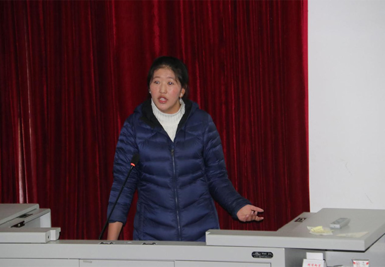 为贯彻落实党的十九大、十九届二中、三中全会精神和中央第六次西藏工作座谈会精神,进一步坚持更好地服务妇女群众,认真实施好“五大工程”,落实好“四大行动”,结合 “过好当下幸福生活”专题教育,深入落实《西藏农牧学院大学生文明修身言行计划及养成教育的实施方案》,不断增强广大女性幸福感获得感安全感。植科院于2018年11月7日下午13:30在第二教学楼107教室召开“西藏妇女十大,巾帼建功是新时代”精神分享大会。主讲人为西藏自治区第十次妇女代表,2015级农经本科班扎西普赤同学,党委书记次仁吉和副书记次仁央金出席会议,我院586名女同学全体参会。