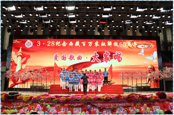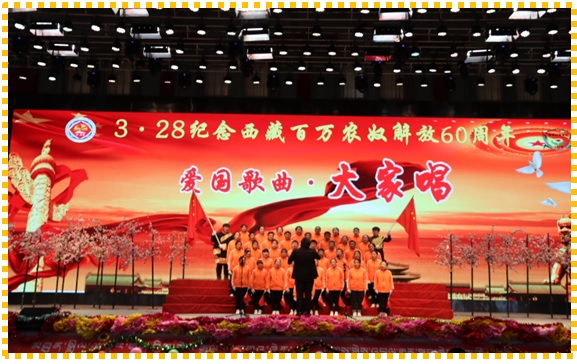 为隆重庆祝西藏百万农奴解放60周年,在植科院广大师生中大力弘扬主旋律,进一步激发爱国、爱党热情,充分展示我院师生积极向上、紧跟党走的精神风貌,同时增强班级凝聚力,丰富校园文化生活,提高大学生文化素养,经过我院师生的共同努力,植科学院“3·28纪念西藏百万农奴解放60周年爱国歌曲·大家唱”合唱比赛于2019年3月30日上午10:00在文体馆隆重举行。党委宣传部部长巴桑次仁、学工处处长赵德军、团委副书记普旺堆以及各二级学院、公教部的领导和老师莅临本次活动。