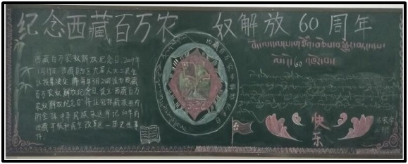 为庆祝3.28百万农奴解放纪念日,植物科学学院团总支于2019年3月25日至30日组织各班开展主题为“3.28纪念西藏百万农奴解放60周年”的黑板报制作宣传活动。