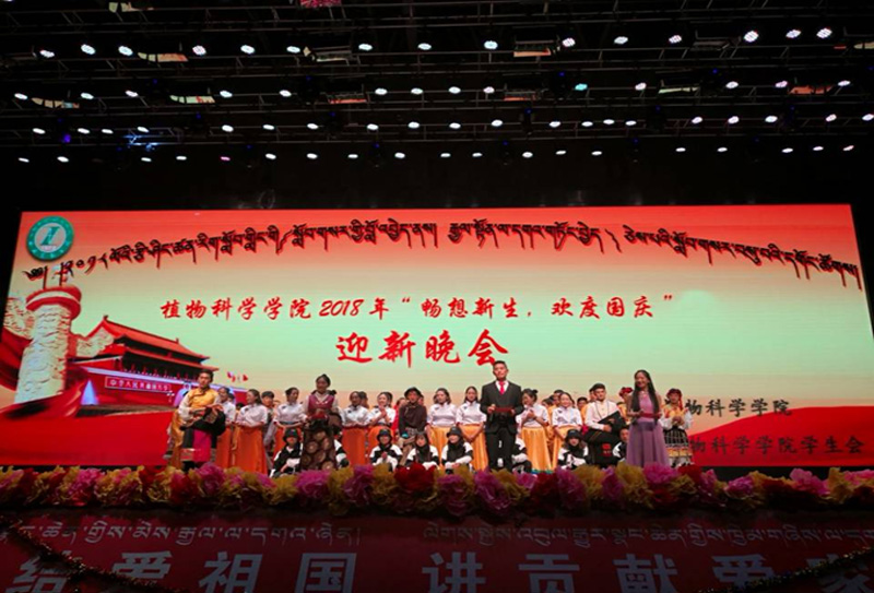秋风送爽、杏叶金黄,在这如诗的季节,为贯彻落实“过好当下幸福生活”及“四讲四爱”群众教育实践活动精神,让新同学切身感受社会主义新西藏新发展、新变化、新生活,铭记旧西藏的苦,珍惜新西藏的甜,我院于2018年10月1日19点半在我校文体馆隆重举行植物科学学院2018年“畅想心声,喜迎国庆”主题迎新晚会活动。出席此次晚会的领导有:我院党委书记次仁吉、院长王中奎、党委副书记次仁央金、王有强、旺姆、达红旗副院长及各二级学院领导,我院全体学生观看晚会。