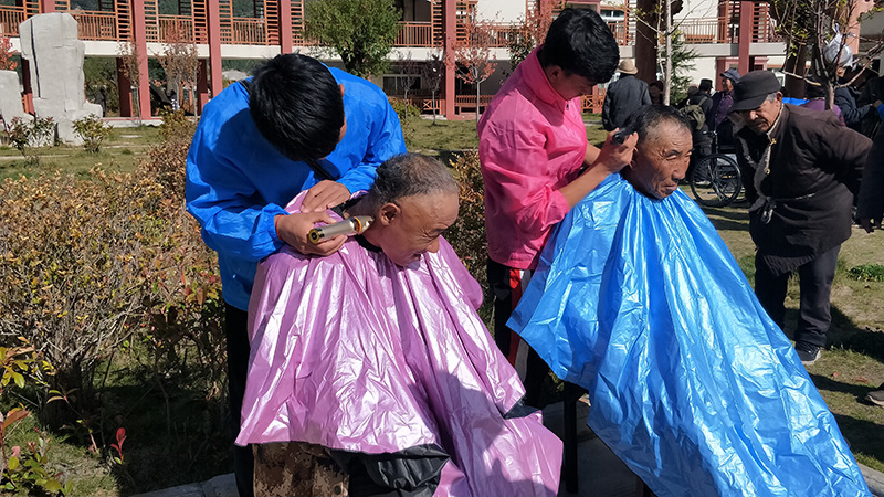 为深入学习贯彻习近平新时代中国特色社会主义思想和党的十九大精神及“四讲四爱”之“讲文明爱生活”群众教育实践活动精神。为弘扬中华民族敬老、孝老、爱老优良传统和孝道文化。为了使“孝老爱亲”在全院学生的思想上深深扎根,更好的落实“孝老爱亲从我做起”主题活动。植物科学学院于2018年10月14日在院党委书记牵头下,党团学学生干部共计56人来到米林县五保户集中供养中心开展“四讲四爱之孝老爱亲”群众教育实践活动。