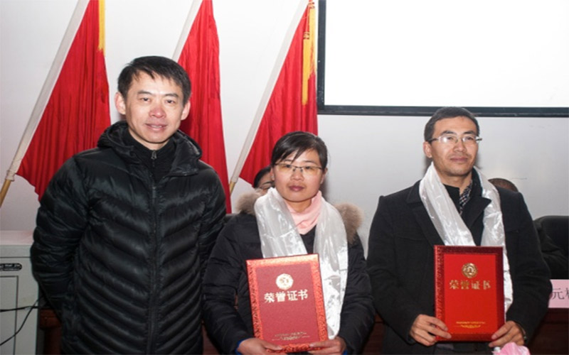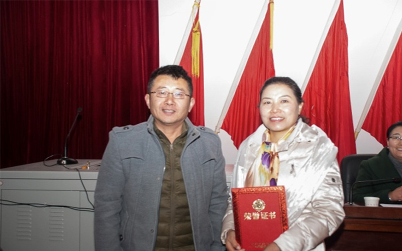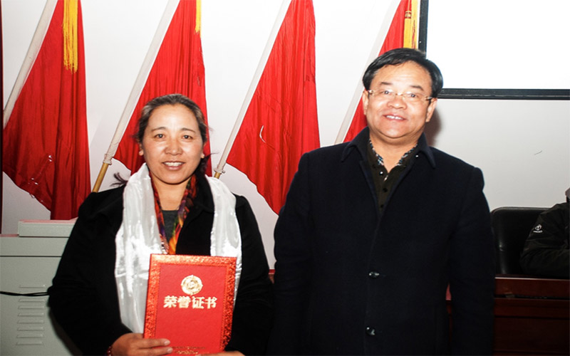 学校党委书记云丹加措为荣获科研工作先进团队代表旺姆颁奖