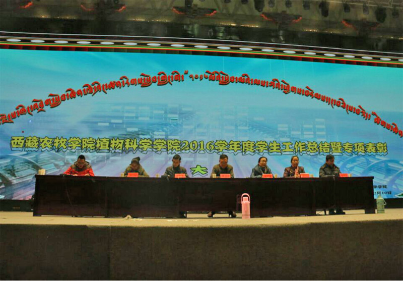 为激励老师更加热爱岗位、同学更加积极进取,我院全体师生于2016年12月10日在文体馆隆重召开 “植物科学学院2016年度学生工作总结暨专项表彰大会”。本次大会由植科院副院长王有强主持,农牧学院党委委员院长助理李卫星、植科院党委书记次仁吉、党委副书记次仁央金、副院长旺姆、副院长达红旗列席。